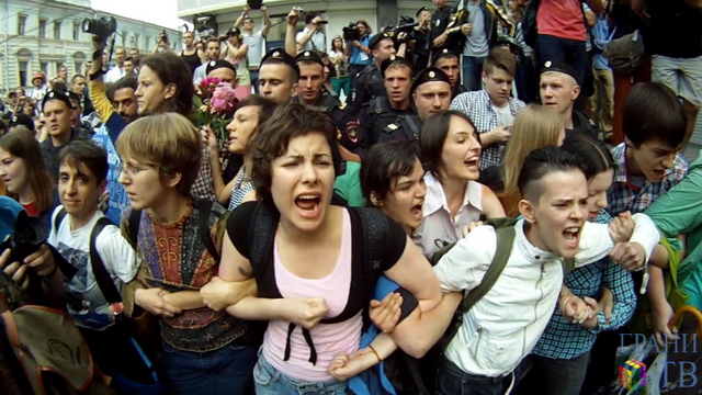 СПЕЦПРОЕКТ "ГРАНЕЙ" ПРОТИВ ГОМОФОБИИ Задержания на акциях у Госдумы. Видео Дмитрия Зыкова: