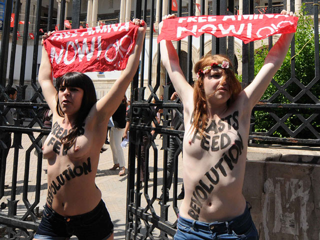 Полина, Жозефина и Маргарита (две француженки и немка) — были задержаны 29 мая в столице Туниса во время топлесс-акции у Дворца правосудия. Активистки скандального движения проводили в Тунисе акцию в поддержку еще одной участницы Femen, задержанной тунисскими властями 19 мая. Раздевшись по пояс и демонстрируя "провокационные" надписи "Груди, которыми кормится революция", девушки выкрикивали: "Освободите Амину!". Активисткам грозило до одного года лишения свободы.