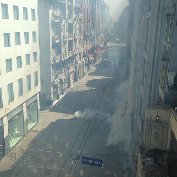16.18 Столкновения в Стамбуле продолжаются почти с самого утра. Проспект Истикляль окутан дымом от слезоточивого газа. Люди там собираются небольшими группами, начинаю скандировать "Эрдоган, уходи!" или, чаще - "Таксим, везде, сопротивление - везде! " - и полиция тут же забрасывает их шашками со слезоточивым газом и гонит прочь по проспекту.
