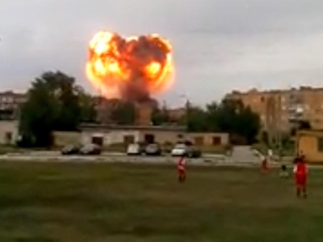 По словам Меркушкина, до самого близкого населенного пункта - поселка Нагорный (расположен в 2 км), откуда эвакуированы все местные жители, - снаряды не доходят, но взрывы могут перекинуться и на склады с боеприпасами, осколки которых могут дойти до поселка.