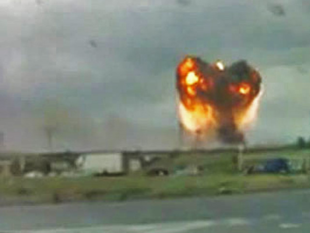 Тем временем в соцсетях появились десятки видеороликов, на которых слышна канонада от взрывов и видно пламя пожара.