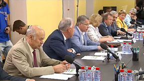 Предвобырный штаб Сергея Собянина. Фото: 1tv.ru Да, Швецова произнесла интересную - с точки зрения субъектности - фразу: "Штаб сформировался большой, в нем авторитетные и уважаемые люди. Москвичи Вам доверяют". Вот кому это было сказано? Первое предложение - как бы даже в сторону общественности. Второе - очевидно, к самим авторитетным и уважаемым. Все это к тому, что уже весело, а будет еще веселее, раз уж там КВН, цирк, художественный руководитель Театра мюзикла, М.Куснирович, Г.Куценко и М.Миронова.