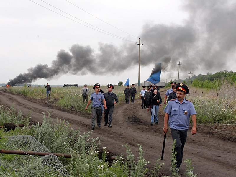 По данным МВД, в субботу, 22 июня, в 18:30 группа «радикально-настроенных лиц в количестве 1000 человек» проникла на территорию, прилегающей к вахтовому поселку, где протестующие умышленно повредили ограждения, подожгли две буровые вышки и два вагончика. На место происшествия выехали 120 полицейских, которые доставили в отдел 25 человек.