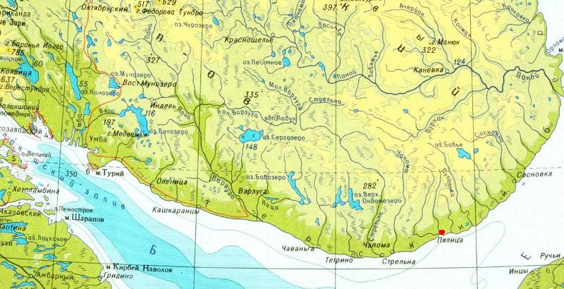 08. И чуть географии. Деревня Пялица находится на востоке побережья Белого моря Кольского полуострова. (красная точка в правом нижне углу)