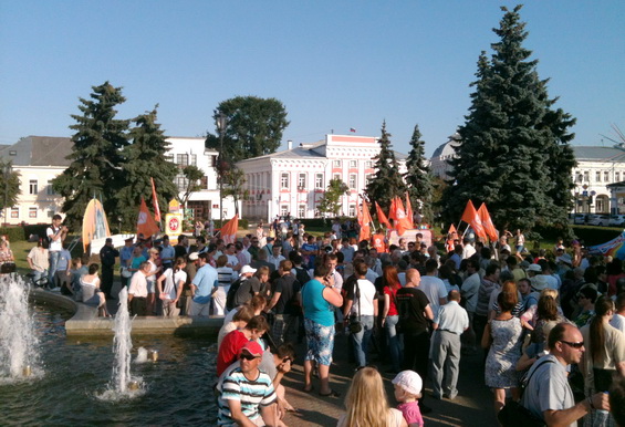 У мэрии Ярославля в среду прошел народный сход в поддержку мэра Евгения Урлашова