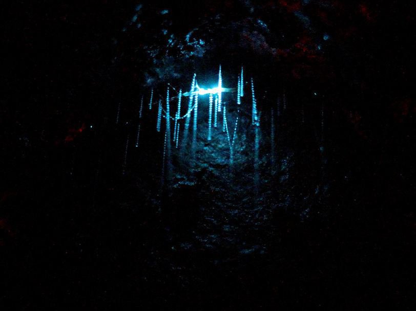 Личинки австралийских грибных комариков знамениты тем, что способны светиться в темноте – их подсвеченные нити с капельками липкой жидкости свисают со сводов пещер или ветвей деревьев в укромных уголках леса, привлекая незадачливых насекомых, которые служат личинкам добрым обедом.
