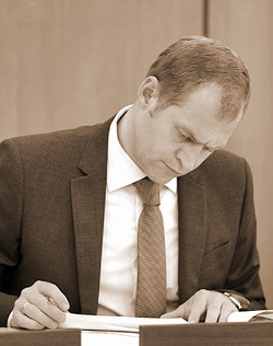 Бывший первый заместитель губернатора Сергей Перников с маской полного безразличия на лице в течение всего часа заседания демонстративно читал бумаги на столе перед собой и ни разу не поднял глаза.