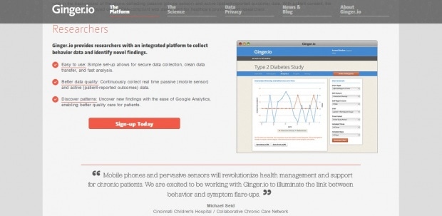 Приложения для оценки душевного состояние пользователя далеко не новинка, однако популярностью они не пользуются. Во многом это связано с тем, что подобные программы предполагают контакт с человеком, т.е. пользователь сам отвечает на вопросы, заполняя сведения о своем эмоциональном состоянии, что не всегда приятно, если это состояние пребывает не в лучшей фазе. «Ginger.io» работает автономно, не докучая пользователями лишними оповещениями и расспросами, что делает его по-настоящему уникальным.