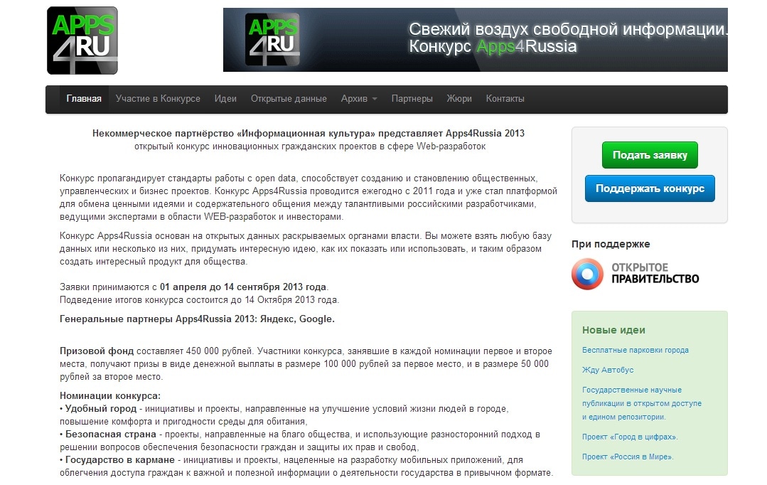 «Apps4Russia» – одно из главных событий в сфере гражданских Web-проектов. В этом году разработчики со всей страны будут соревноваться в трех номинациях: «Удобный город», «Безопасная страна» и «Государство в кармане».