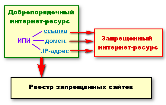 Теперь по-русски: если какой-либо интернет-ресурс разместит у себя ссылку или указатель страницы без ссылки или наименование домена или IP-адрес, которые запрещены в России (включены в Реестр, заблокированы по решению суда и т.п.), то он также может быть включен «черные списки сайтов» и заблокирован провайдерами на территории России.
