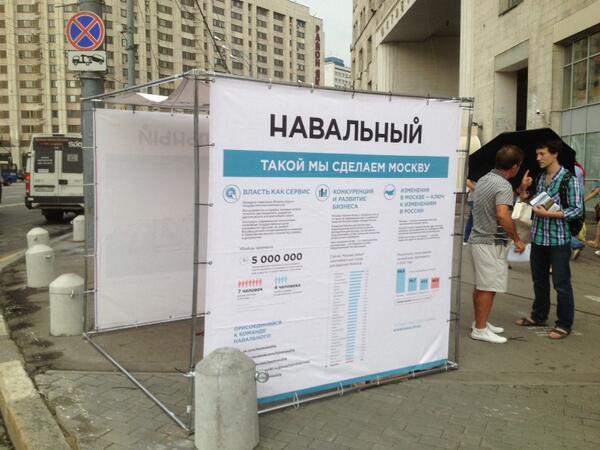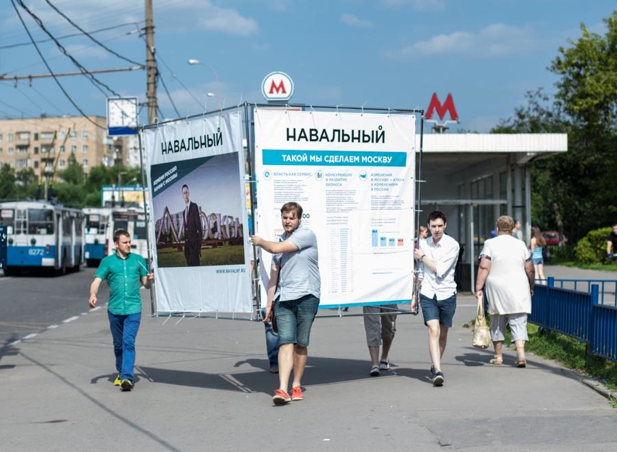 Учитывая, что доступа на федеральные телеканалы у Навального нет, в штабе разрабатывают нестандартные способы агитации. Например, уже сейчас в тестовом режиме из окон квартир волонтеров с помощью проекторов начали транслировать просто фамилию «Навальный» на стене соседнего здания. Но в целом акцент делается на личный контакт волонтера и москвича. Заявленная цель — как минимум 12 миллионов контактов с горожанами, а как максимум — 20 миллионов.