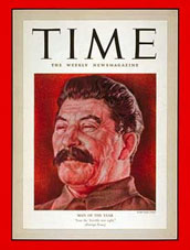 Обложка журнала Time В следующем году лауреатом стал Иосиф Сталин — причем также отнюдь не как положительный герой, Советский Союз тогда был фактически союзником Третьего Рейха. Однако изображение усмехающегося Сталина на обложке появилось. В 1942 году, когда Сталин вновь стал человеком года по версии журнала Time, но на этот раз в качестве союзника Америки, он был изображен мудро смотрящим вдаль на фоне русской зимы.