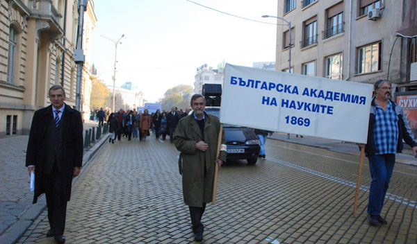 В поддержку Академии Наук. Фото: bas.bg Обсуждение судьбы БАН продлилось всю зиму и весну 2011 года. Кончилось все неожиданно. 19 мая премьер-министр на встрече с руководством БАН заявил, что автономия и целостность академии будут сохранены, а принадлежащая академии недвижимость останется полностью в ее распоряжении.