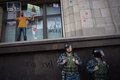 Другой пример совсем за гранью права. В субботу УВД по ЦАО Москвы возбудило уголовное дело по части 2 статьи 214 УК за нанесение надписей и наклейку плакатов и стикеров на здание Госдумы во время состоявшегося накануне несанкционированного митинга. Дело возбуждено в отношении неустановленных лиц. Статья называется "Вандализм" и предполагает наказание до трех лет лишения свободы.