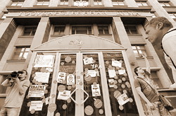 Госдуму немедленно залепили наклейками с надписями в защиту Навального. Потом власти это назовут «вандализмом».