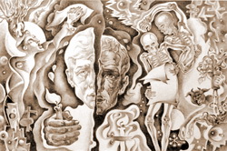 А век тем временем постепенно начинает заполняться. Мгла вытесняется светом. Пустота исчезает. Художник оглядывается и пытается зарисовать увиденное.