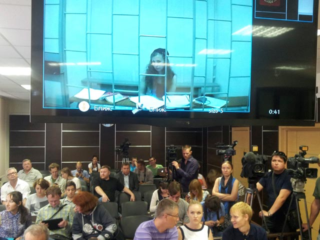 "Судебная коллегия постановила продолжить заседание без осужденной", - сказал председательствующий на процессе. Система видеоконференции, с помощью которой Алехина из СИЗО участвовала в заседании, была отключена. Интересы осужденной представляла ее адвокат Хрунова.