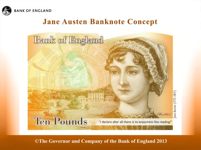 Кандидатура Остин была представлена в качестве главной на размещение на купюрах в прошлом месяце. В настоящее время на десятифунтовых банкнотах изображен Чарльз Дарвин.