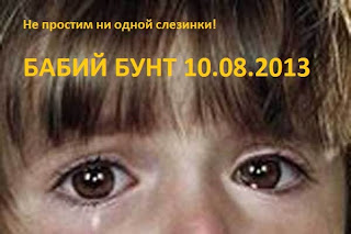 Мы, матери, женщины России, встаем на защиту нашего будущего. Мы призываем всех женщин России выйти 10 августа 2013 года на Бабий бунт во всех регионах страны!