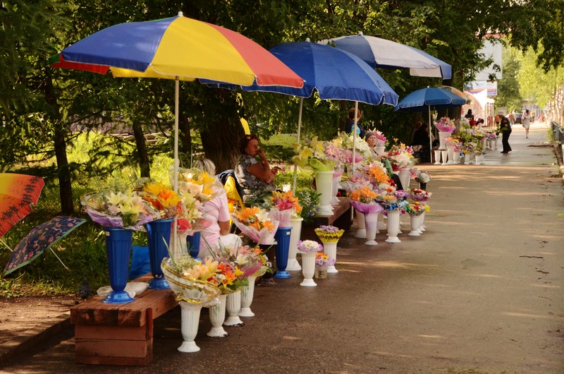 Так же обстоят дела и с продажей цветов. Администрация города определила всего одно место, где можно осуществлять торговлю — на пересечении улиц Интернациональная и Бабушкина. Однако там никого нет. Основная торговля идет напротив ЦУМа. Как пояснили корреспонденту «7x7» продавцы, они не хотят покидать насиженное место, так как оно более проходное.