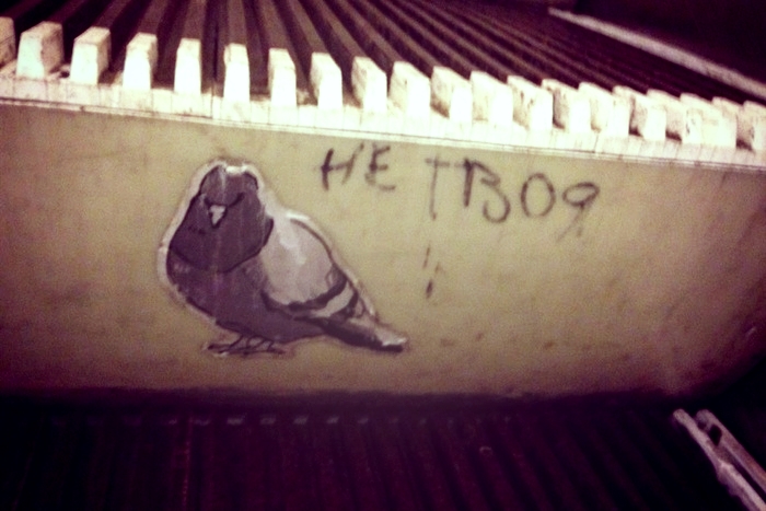 Время от времени корреспонденты и читатели «Бумаги» видят на городских стенах многозначительные, парадоксальные и необъяснимые надписи, а иногда становятся свидетелями занимательных случаев. Больше фото — по тегу #мобильныерепортеры в соцсетях и на сайте «Бумаги». Сегодня у нас голубь свободы на ступенях эскалатора в метро «Площадь Восстания».