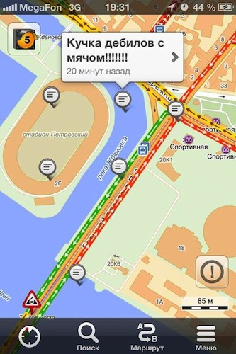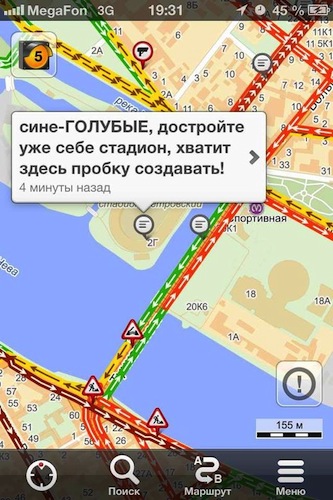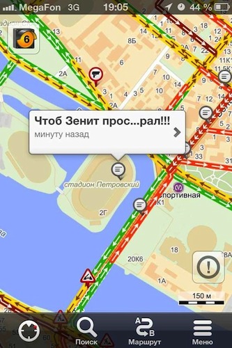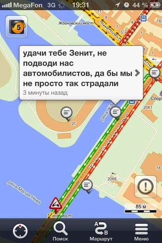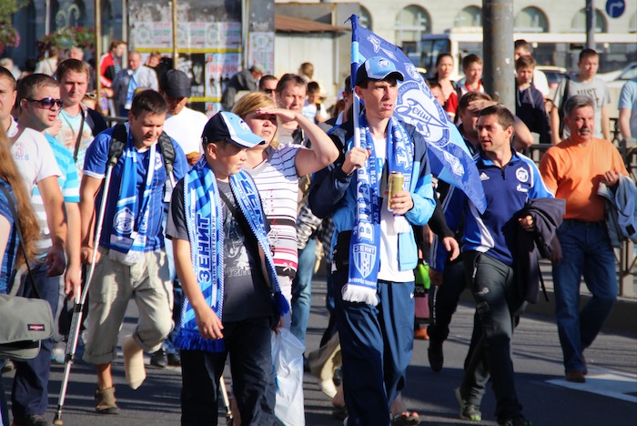 По случаю обновления логотипа клуба и начала сезона фанаты «Зенита» проследовали возбужденной пятитысячной колонной от здания Биржи к стадиону «Петровский». Так называемый перформанс «От Стрелки — к „стрелке“» перегородил Биржевой мост и заставил понервничать автомобилистов: они не могли попасть с Васильевского острова на Петроградскую сторону. «Бумага» выбрала несколько скриншотов сервиса «Яндекс.Пробки» с возмущенными репликами водителей.