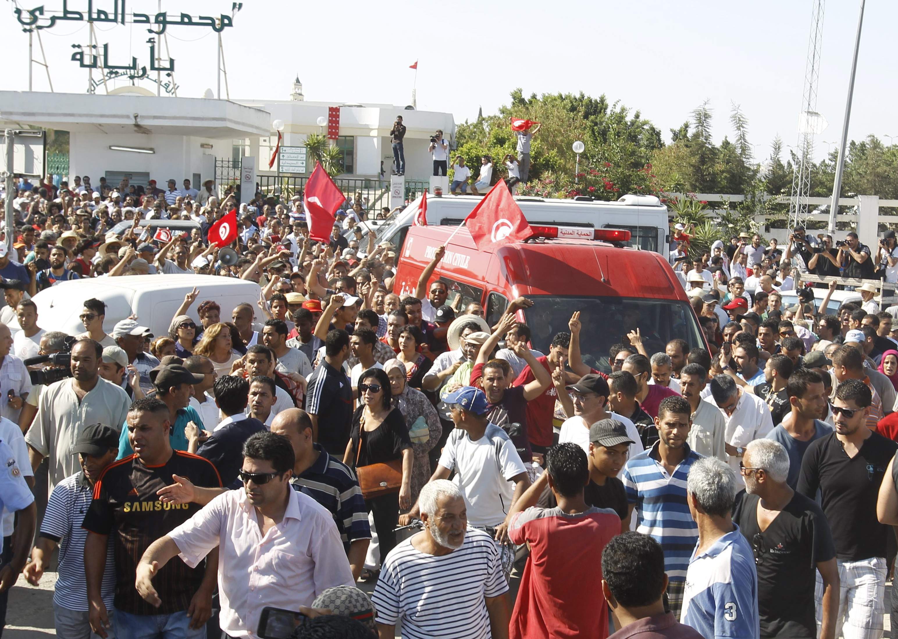 Вчера в столице Туниса и в других городах страны тысячи людей вышли на улицы, требуя отстранить от власти правящую партию "Эннахда". В городе Сиди-Бузид, где родился Брахми, демонстранты подожгли офисы правящей партии. Полиция применила слезоточивый газ, чтобы разогнать манифестантов.