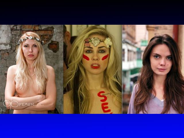 Femen известны своими топлес-акциями, которые они устраивают в разных городах мира. Протестующие с голой грудью считают патриарха и президента России своими врагами и не раз встречали их на разных официальных мероприятиях. Так, в прошлом году во время подхода патриарха Кирилла к журналистам на взлетной полосе в аэропорту "Борисполь" после прибытия на Украину по случаю празднования Крещения Руси активистка Femen Яна Жданова подбежала к нему с обнаженной грудью, выкрикивая: "Изыди вон!"