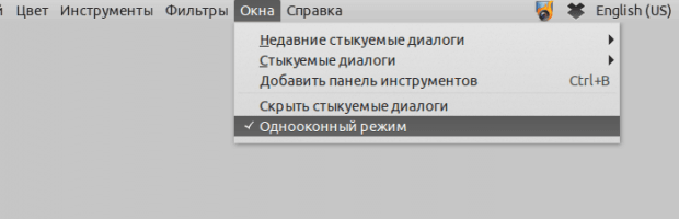 После установки и запуска программы вас может несколько озадачить ее непривычный интерфейс. Дело в том, что GIMP изначально использует многооконную архитектуру, когда каждый раздел программы открывается в собственном окне. Многие находят это удобным, однако, если вам не нравится такая компоновка, то вы можете легко переключиться к привычному однооконному интерфейсу. Для этого просто найдите в главном меню программы раздел Окна и активируйте в выпадающем меню соответствующий режим.