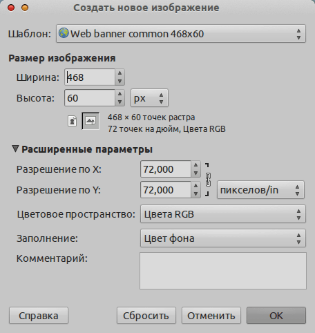 Для создания нового изображения выберите соответствующий пункт в меню Файл. В появившемся диалоговом окне вы сможете выбрать один из предлагаемых шаблонов или задать свои собственные параметры нового файла.