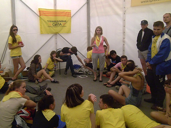 В свою очередь, эсеры были не очень довольны. Они считают, что их притесняют охрана форума. Там вот в чем дело: посещение лекций для всех обязательно. Разумеется, можно не слушать, не знать тему и имя лектора, главное - присутствовать. За прогул и любое другое нарушение в бейджике пробивается дырка. Три дырки - с Селигера до свидания. Так вот, претензии эсеров: «Охрана сама не знает своих правил, необоснованно ставят дырки. Они говорят, что начальство им сказало дырявить всех», – рассказывает Максим.