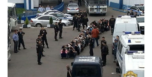 Трудовые мигранты Фото: fergana.info В связи с инцидентом на Матвеевском рынке борьба с нелегальной миграцией внезапно обрела для российского МВД особую актуальность. После «зачисток» столичных рынков начались проверки по всему городу, а Следственный комитет обещает проверить базарные площади по всей России. Полиция задерживает мигрантов сотнями и тысячами, выявляет среди них нелегалов, которых тут же принимает специально подготовленный палаточный лагерь МЧС с полевыми кухнями и горячей кашей.