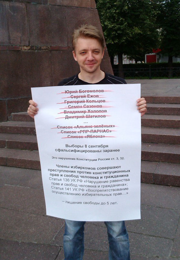 Участники мероприятия потребовали от избиркома зарегистрировать кандидатов-членов Комитета протестных действий (КПД) Юрия Богомолова и Сергея Ежова, список РПР-ПАРНАС, всех одномандатников партии "Яблоко" и других рязанских политиков, которых под надуманным предлогом сняли с выборов.