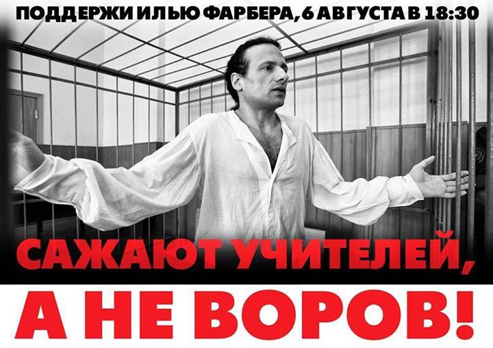 6 августа в Москве пройдет акция в защиту Ильи Фарбера - бывшего сельского учителя, приговоренного к 7 годам колонии строгого режима по делу о взятке. Начало в 18:30.