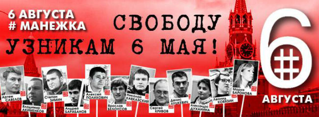 "6-го числа каждого месяца мы будем выходить до тех пор, пока власть не прекратит незаконное преследование граждан по так называемому «Болотному делу». Мы будем выходить, пока не добьемся освобождения всех узников 6 мая! Место - Красная или Манежная площадь. Если их перекроют, мы пойдем на площадь Революции. Время – 19 часов.