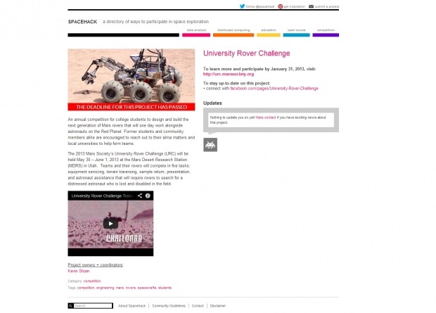 Так же как и «Mesh Cities» ресурс Spacehack собирает в одном месте проекты общей тематики но разного содержания. Отличие состоит в том, что в каждом из них пользователь может принять участие: исследование просторов космоса, наблюдение за небесные телами, робототехника… участники могут посетить виртуальный мастер-класс по строительству собственного телескопа.