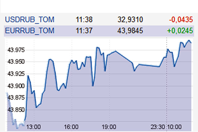 Курс евро впервые с 2009 года перескочил за отметку в 44 рубля