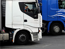 Пока чех был занят делом, автомобиль откатился назад, и водителя зажало между двух грузовиков: его собственным и соседним, который стоял чуть дальше.