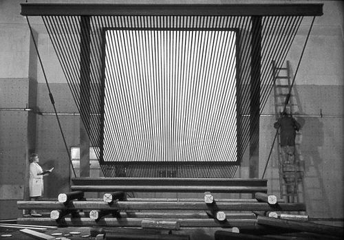 В Советском Союзе технологии стереокино активно разрабатывались еще до войны. В СССР был открыт один из первых стереокинотеатров в мире, к тому же в Москве работал 3D-зал, просмотр фильмов в котором не требовал очков вообще, — на площади Маяковского, в кинотеатре «Москва». Принцип технологии простой, мы все с ней прекрасно знакомы по открыткам, на которых то волк из «Ну, погоди» подмигивал, то японская девушка раздевалась. В этом кинотеатре проектор и экран с помощью решетки со специально подобранным шагом были устроены так, чтобы у каждого человека в довольно небольшом, мест на 200, зале создавался стереоэффект благодаря тому, что в разные глаза поступала разная информация. Правда, стоило чуть пошевелить головой или отклониться вбок, стереоэффект разрушался. С этим до сих пор не удается справиться, поэтому в ближайшие годы, пока не случится прорыва, например, в голографическом кино, мы будем смотреть 3D-кино через специальные очки, разделяющие световые потоки для каждого глаза. Как бы мы ни шевелились, очки-то у нас на носу!