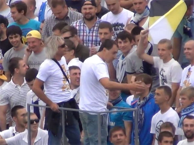 По ходу первого тайма певец поднялся на вышку заводящего фанатского виража и вместе с болельщиками исполнил песню "Алисы" под названием "Небо славян".