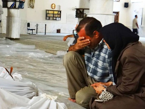 Родители оплакивают жертв химической атаки в Сирии официальная страница Facebook сирийских повстанцев Генеральный секретарь Лиги арабских государств Набиль аль-Араби потребовал от инспекторов Организации объединенных наций по химическому оружию немедленно отправиться в район Восточная Гута в пригороде Дамаска, чтобы разобраться в ситуации.