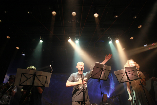 Сейчас для спектакля «Сахар» мы собрали группу, и оказалось, что чтение текста — это тоже музыка. Я не стал музыкантом, но я участвую в группе, и для меня это захватывающий эксперимент. Я веду себя в группе как вокалист, но я все-таки не вокалист. Я чтец. Вокалист-чтец. Хотя одну песню я даже пою, к стыду своему: «Вселенную» группы «Рондо». Но поскольку мы исполняем ее с юмором и как бы комически, то это еще можно.