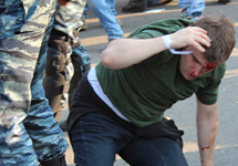 В суде политзек отверг эти утверждения, заявив, что с криками "Что вы творите?" оттаскивал омоновца от демонстранта, пытаясь остановить расправу. В ответ Гаскарова ударили резиновой дубинкой по лицу и, повалив на землю, стали избивать ногами. Активист получил рваные раны головы. Он подал в СКР заявление об избиении, однако в итоге обвиняемым стал сам.