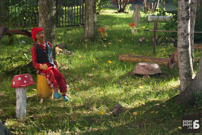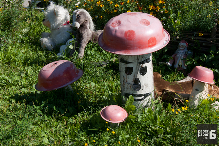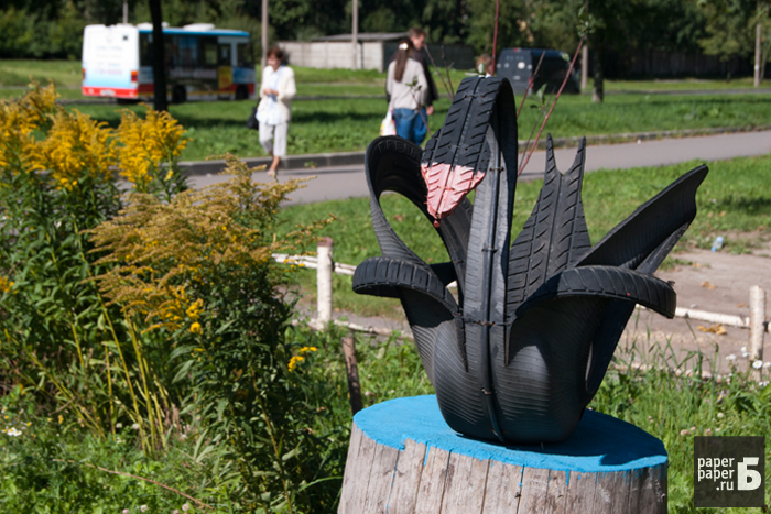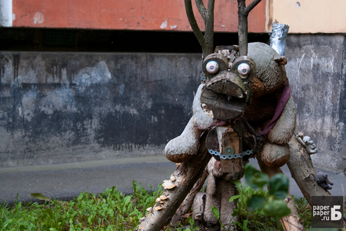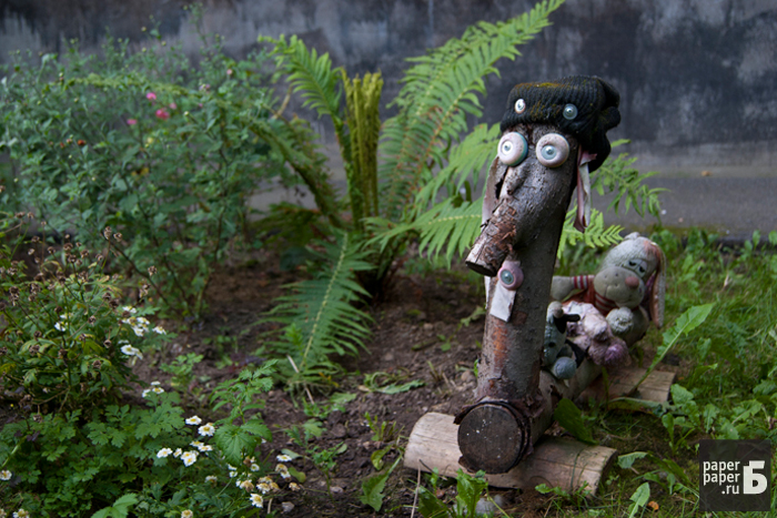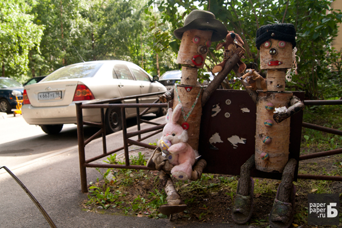 На петербургских детских площадках можно встретить по-настоящему необъяснимые вещи. Деревянные дуболомы в обнимку с розовым кроликом, руки-вилки, торчащие из пластиковой посуды, черный лебедь из автомобильного колеса — эти порождения чьего-то безумного сознания встречают нас у дома и играют с нашими детьми. «Бумага» прошла по детским площадкам и сфотографировала более десятка предметов, которые сведут вас с ума.