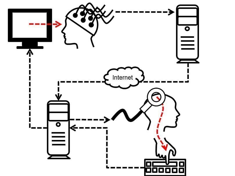 В ходе эксперимента Раджеш Рао играл в простую компьютерную игру, используя интерфейс мозг-компьютер. В те моменты, когда в ходе игры он должен был стрелять в цель, ученый, не шевеля рукой, лишь мысленно формулировал намерение нажать на клавишу пробел. При этом у Раджнеша Рао снималась электроэнцефалограмма, регистрирующая активность мозга. В это время в другой лаборатории находился Андреа Стокко с закрепленным на голове устройством для транскраниальной магнитной стимуляции (transcranial magnetic stimulation, TMS), направленным на зону моторной коры левого полушария, контролирующую движения рук. Данные об активности нейронов в мозге Раджнеша Рао передавались через интернет на компьютер, управляющий устройством TMS.
