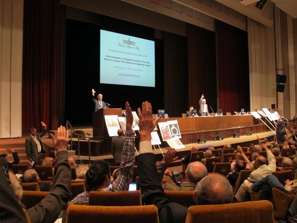 На Конференции научных работников РАН принята резолюция«О реформах в Российской академии наук». «Необходимость реформ в сфере науки давно назрела. В научном сообществе сложилось общее понимание их смысла и направленности. Вопрос в том, кто будет реформы проводить», – говорится в тексте документа.