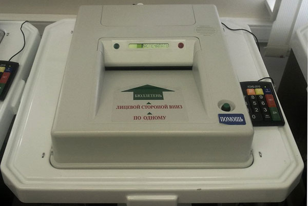 КОИБ. Фото: Симон Жаворонков/polit.ruЕсли обучение председателей и секретарей — вопрос, скорее, «политический», то операторов КОИБов интересует только техническая сторона вопроса. КОИБ — это, упрощенно говоря, сканер, размещенный над обычной урной. Человек опускает в него бюллетень, умная машина смотрит, в каком квадратике поставлен крестик (или другой значок) и в конце дня выдает результат голосования.