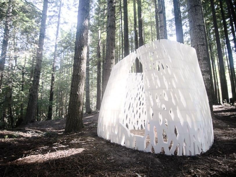 Партнер проекта Художница Стефании Смит (Stephanie Smith) и архитектор Брайан Аллен (Bryan Allen) в рамках Проекта 387 представили в лесу секвой к северу от Сан-Франциско первую в мире архитектурную конструкцию, напечатанную на 3D-принтере.