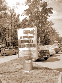 Как сказано в одной наружной псковской рекламе: «Борщ не последняя надежда, а единственная». На самом деле там первоначально было написано несколько иначе: не Борщ, а Бог. Однако кто-то шустрый внёс правку.
