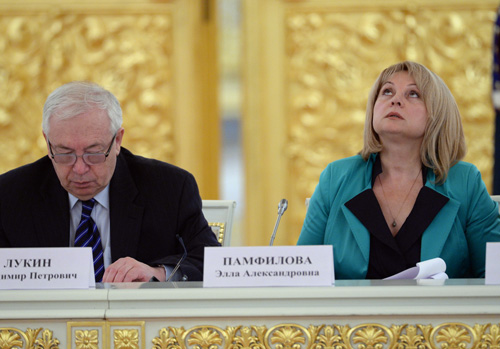 Уполномоченный по правам человека Владимир Лукин и Элла Памфилова на встрече с Путиным. 4 сентября 2013 г.